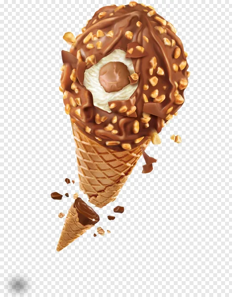 Indulge in this mouth-watering, high-quality PNG of a decadent chocolate nut ice cream cone. Featuring a rich chocolate coating generously sprinkled with crunchy nuts, it reveals a luscious creamy white filling with a tempting chocolate praline center. The dynamic image captures the cone breaking apart, with drips of chocolate and scattered nut pieces, adding an exciting visual effect. Perfect for dessert menus, food blogs, marketing materials, social media graphics, or any project needing a delicious visual. Download this transparent, free PNG to add a touch of irresistible sweetness to your designs today!