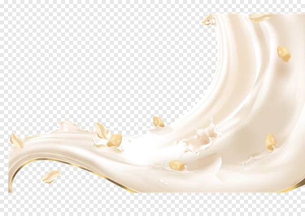 Immerse your designs in the creamy goodness of this free PNG image featuring a dynamic milk or cream splash, elegantly swirling with scattered nuts or oats and accented by a subtle golden line. Perfect for food and beverage promotions, cosmetic product showcases, health and nutrition graphics, or any project needing a fresh, fluid, and luxurious touch. This high-quality, transparent background PNG allows for easy integration into your creative works. Download now to add a touch of smooth elegance and natural texture to your next digital or print design!
