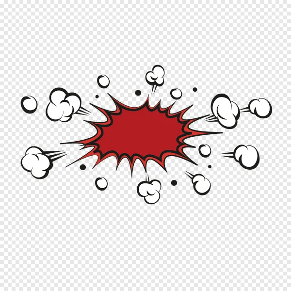 Download our vibrant red comic book explosion PNG for free! This dynamic pop art burst effect features a central spiky red shape, surrounded by stylized smoke clouds, flying circles, and dots, perfect for adding impact and excitement to your designs. Use it for presentations, social media posts, web graphics, educational materials, or personal projects. Ideal for conveying surprise, loud sound effects like "BAM!" or "POW!", or an exciting highlight. Get this high-quality, transparent background graphic now and make your visuals pop with retro comic style!