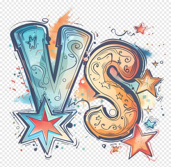 Unleash the energy with this vibrant 'VS' (Versus) graphic PNG! Featuring bold, artistic lettering in contrasting blue and orange hues, surrounded by dynamic stars and cool paint splatters. Perfect for illustrating comparisons, gaming showdowns, sports events, or any challenge-related content. This high-quality image comes with a transparent background, making it incredibly versatile for your projects. Download this eye-catching, free PNG to add a powerful visual statement to your designs, presentations, or social media posts today!