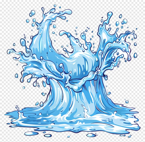 Download this stunning, high-quality water splash PNG image for free! Perfect for adding a dynamic and refreshing element to your designs, websites, or presentations. This vibrant illustration features a detailed water burst with bubbles and flowing shapes. Use it for ocean themes, water effects, or any project needing a splash of energy. No attribution required – download and use instantly!