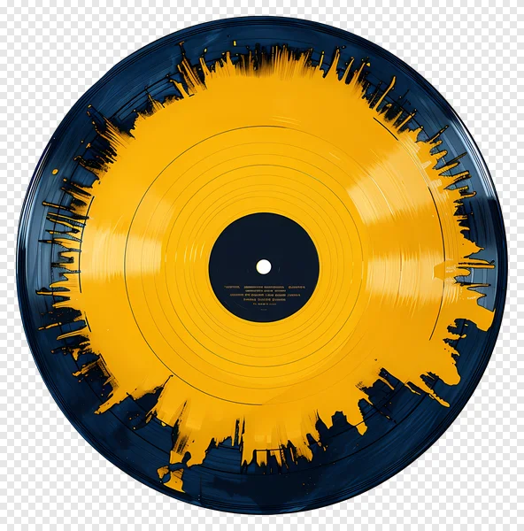 Discover this captivating free PNG image featuring a dark blue vinyl record dramatically splattered with vibrant yellow paint against a sleek black background. Its abstract, energetic design creates a powerful visual statement, perfect for music-related projects, album covers, concert flyers, or any creative design that needs a pop of color and retro-modern flair. This high-quality graphic blends classic music aesthetics with contemporary art, offering a unique background or focal point. Easily enhance your digital art, web design, presentations, or social media posts. Download this eye-catching yellow and blue paint splatter record PNG for your next project today – absolutely free!