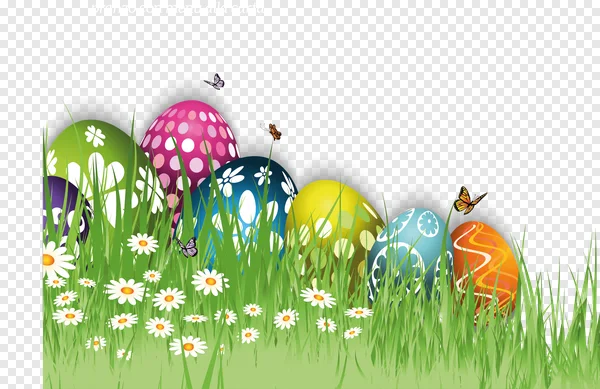 Download this beautiful, high-quality Easter PNG image for free! Featuring vibrant, colorful Easter eggs nestled in lush green grass with delicate daisies and fluttering butterflies, it's perfect for spring-themed designs, Easter cards, website graphics, social media posts, and more. Enhance your projects with this festive and cheerful illustration – no attribution required! Get your free download now and add a touch of springtime joy to your creations.
