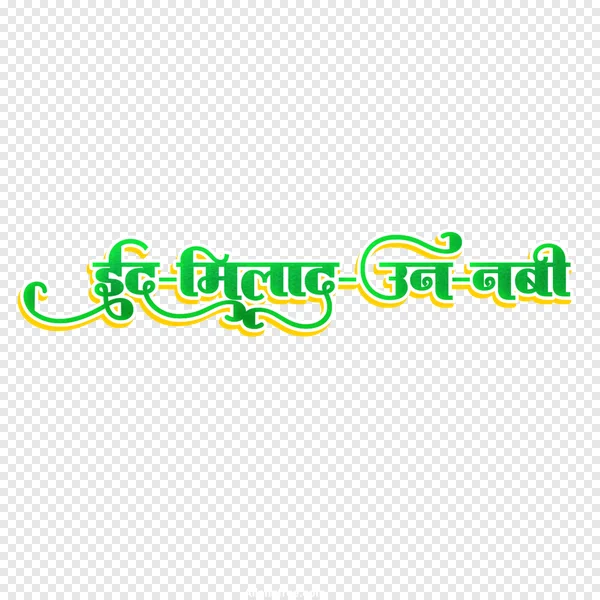 Celebrate Eid Milad-un-Nabi with this beautiful, free PNG image featuring the festive greeting 'ईद-मिलादुन्नबी' in vibrant green calligraphy. Adorned with elegant yellow and white outlines, this stylized Hindi/Urdu text is perfect for conveying heartfelt wishes on the Prophet Muhammad's birthday (Mawlid). Download this high-quality, transparent PNG for your social media posts, banners, invitations, greeting cards, or digital projects. Easily integrate this religious text into your designs to add a touch of reverence and joy. Get your free Eid Milad-un-Nabi transparent image now and enhance your festive content!
