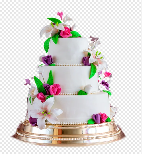 Download this stunning high-quality PNG of an elegant 3-tier white wedding cake, perfect for your next design project. Adorned with vibrant pink and purple roses, delicate white lilies, lush green leaves, and classic pearl-like borders, this beautiful celebration cake sits gracefully on a golden stand. Ideal for wedding invitations, anniversary cards, birthday designs, digital scrapbooking, presentations, or any creative endeavor requiring a sophisticated dessert visual. With a transparent background, it's effortlessly easy to integrate into any layered graphic. Get your free download now and add a touch of sweetness and charm to your creations!