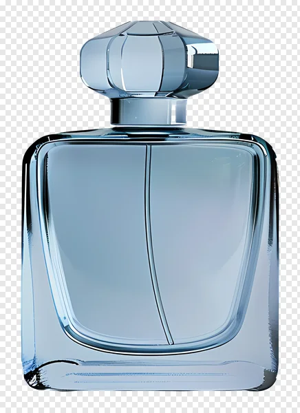 Download this stunning, high-quality PNG of an elegant blue glass perfume bottle, perfect for your design projects. Featuring a modern, transparent glass body with a subtle blue tint and a stylish faceted cap, this image is ideal for showcasing luxury fragrances and cosmetic products. Use this isolated asset for graphic design, beauty mockups, advertising campaigns, web design, or presentations. Its crisp detail and solid black background ensure easy integration into any creative work. Get this beautiful, royalty-free cosmetic bottle PNG for your next project today!