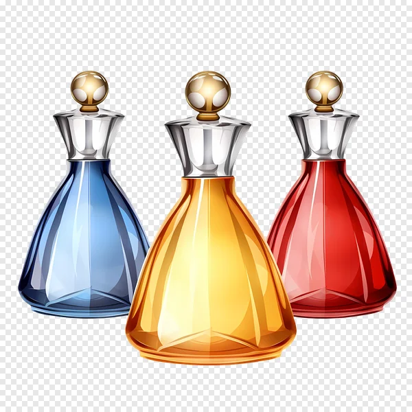 Elevate your creative projects with this exquisite free PNG image featuring three luxurious perfume bottles. This high-quality graphic showcases beautifully crafted glass bottles in radiant blue, brilliant gold, and vibrant red, each adorned with a sleek silver and intricate golden cap. The transparent background makes it perfect for seamless integration into beauty blogs, cosmetic marketing materials, fashion illustrations, digital presentations, or any design needing a touch of sophistication and glamour. Download this stunning, detailed image for free and add an elegant splash of color and luxury to your designs today!