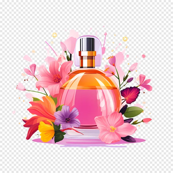 Download this stunning free PNG image featuring an elegant perfume bottle surrounded by a burst of vibrant, colorful flowers and artistic pink splashes. This high-quality illustration, complete with a transparent background, is perfect for beauty blogs, social media graphics, product promotions, packaging design, or adding a touch of floral luxury to any creative project. Enhance your visual content effortlessly with this beautiful fragrance graphic. Get your free download today!