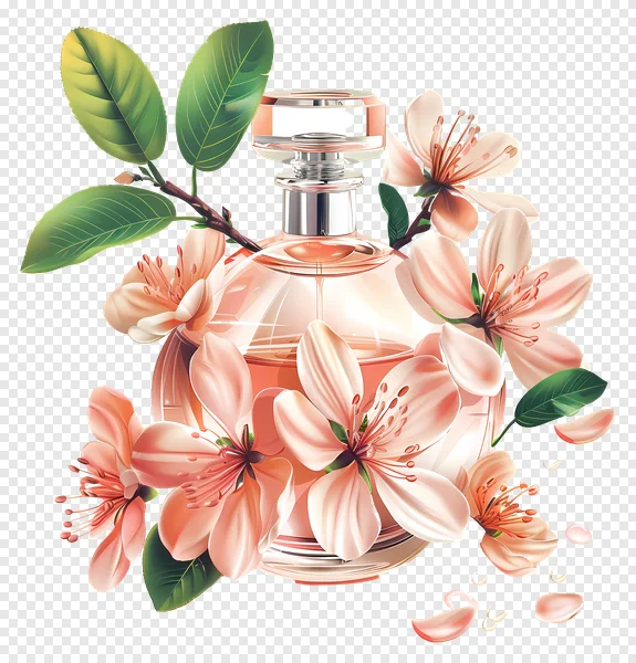 Tags: aroma beauty product cherry blossoms cosmetics elegant floral design fragrance free download fresh green leaves high quality illustration luxury nature peach petals perfume bottle pink flowers romantic spring blooms transparent PNG