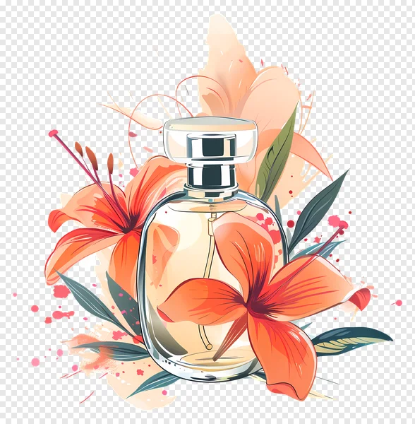Elevate your design projects with this stunning free PNG of an elegant perfume bottle, beautifully adorned with vibrant orange and peach lilies, lush green leaves, and artistic pink splashes. Perfect for beauty blogs, cosmetic marketing, social media graphics, or feminine branding. This high-quality illustration features a transparent background, making it easy to integrate into any creative work. Download this luxurious floral fragrance image now and add a touch of sophistication to your visuals!