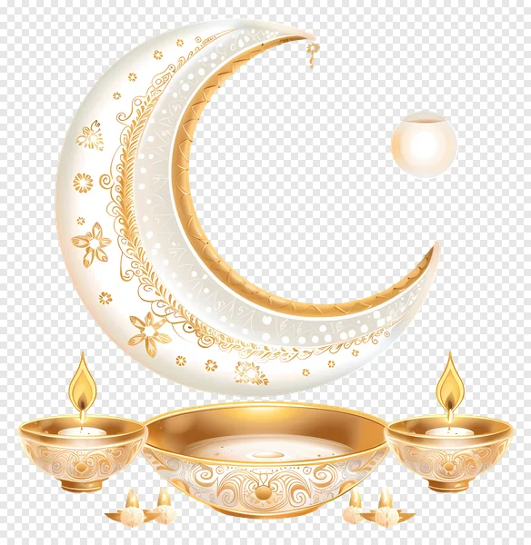 Tags: Eid Islamic festival Muslim Ramadan celebration celestial crescent moon design element diya festive free download gold patterns golden lantern moon oil lamp ornate spiritual transparent PNG white accents