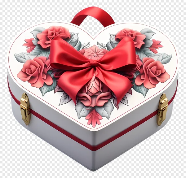 Download this beautiful, high-quality free PNG of an elegant heart-shaped gift box, perfect for adding a touch of romance to your creative projects. Featuring a vibrant red satin bow, delicate pink roses, subtle grey-green leaves, and golden clasps, this stunning floral design comes with a transparent background for easy integration. Ideal for Valentine's Day, anniversaries, birthdays, Mother's Day, or any love-themed creation. Use it for greeting cards, invitations, social media graphics, digital art, web design, and more. Enhance your designs with this charming, luxurious gift box PNG today!
