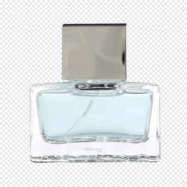 Discover sophistication with our free, high-quality PNG of a MissLand perfume bottle. This exquisite image features a sleek, rectangular clear glass bottle filled with a refreshing light blue fragrance, perfectly topped with a shiny silver metallic cap. Ideal for beauty blogs, e-commerce product mockups, graphic design projects, marketing materials, or presentations. Its transparent background makes it easy to integrate into any design. Download this high-resolution image today to add a touch of luxury and clean aesthetic to your creative endeavors without any cost!
