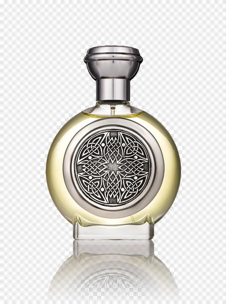 Discover this exquisite free PNG of a luxury perfume bottle, perfect for adding a touch of elegance to your creative projects. Featuring a sleek round glass bottle filled with a golden-yellow fragrance, a shiny silver cap, and a stunning ornate Celtic knot medallion, this high-quality image captures sophisticated details. The bottle stands against a dramatic black background, showcasing its intricate design and a beautiful reflection. Ideal for beauty blogs, product mockups, graphic design, e-commerce, or promotional materials. Download this transparent PNG image for free today and elevate your visual content!