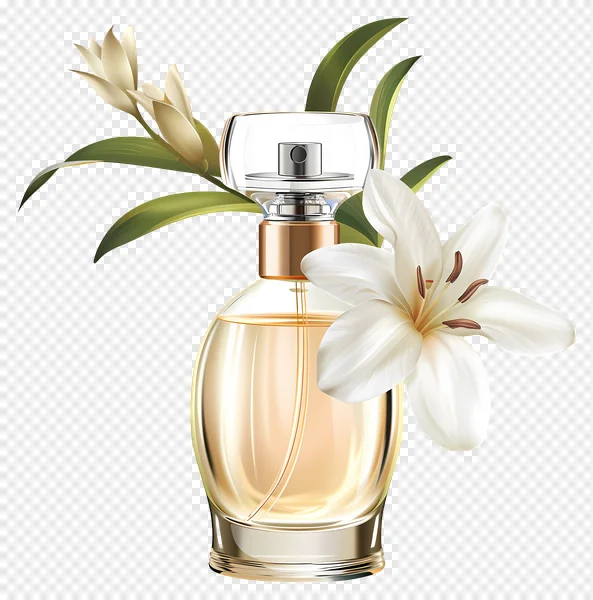 Download this stunning, high-quality free PNG of an elegant perfume bottle, beautifully adorned with delicate white lilies and lush green leaves. The golden-hued fragrance liquid and shimmering glass bottle exude luxury and sophistication against a transparent background. Perfect for beauty blogs, cosmetic product promotions, social media graphics, website designs, or any project requiring a touch of refined floral charm. Enhance your visual content with this exquisite and versatile floral perfume image for free.