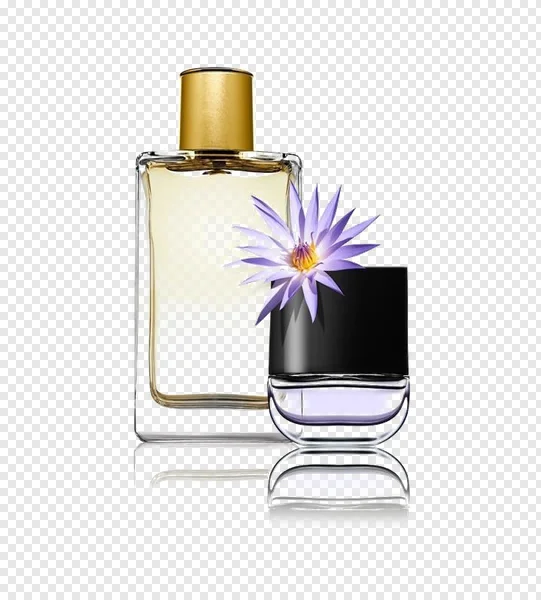 Download this stunning, high-quality perfume bottle PNG image for free! Perfect for beauty blogs, cosmetic designs, product mockups, or adding a touch of luxury to your projects. Featuring two beautifully designed bottles – one with a golden cap and a light yellow liquid, and another with a black cap and lavender liquid – accented by a delicate purple lotus flower. Use this transparent background PNG to easily integrate into your designs. Enhance your visuals today!