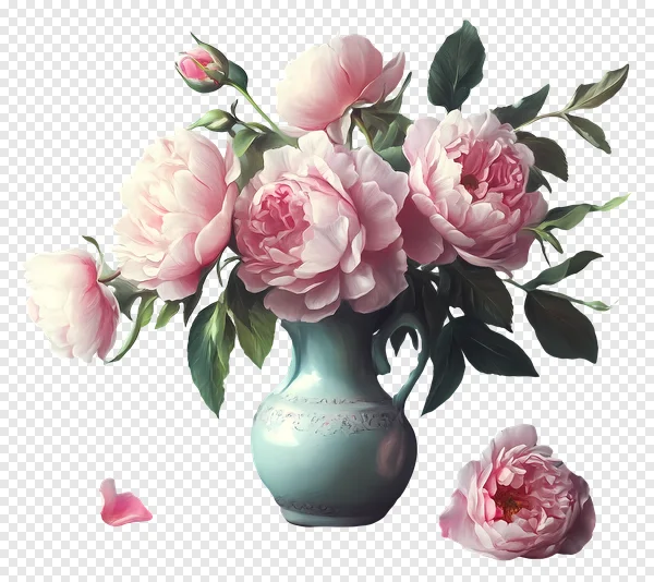 Tags: black background classic floral decorative flowers digital art elegant flowers floral arrangement flower clip art flower petal flowers in vase free download garden flowers green leaves high resolution isolated flowers light blue vase painterly style peony bouquet pink blooms pink peonies romantic bouquet transparent PNG