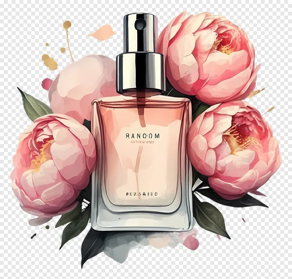 Download this stunning, high-quality PNG image for free, featuring an elegant glass perfume bottle with pink liquid, beautifully surrounded by lush, vibrant pink peonies and delicate green leaves. Set against a chic black background, this transparent floral illustration adds a touch of luxury and feminine charm to any project. Perfect for beauty blogs, cosmetic marketing, social media graphics, product mockups, wedding invitations, or any design needing a sophisticated and aromatic aesthetic. Enhance your creative content with this beautiful, watercolor-style fragrance PNG.