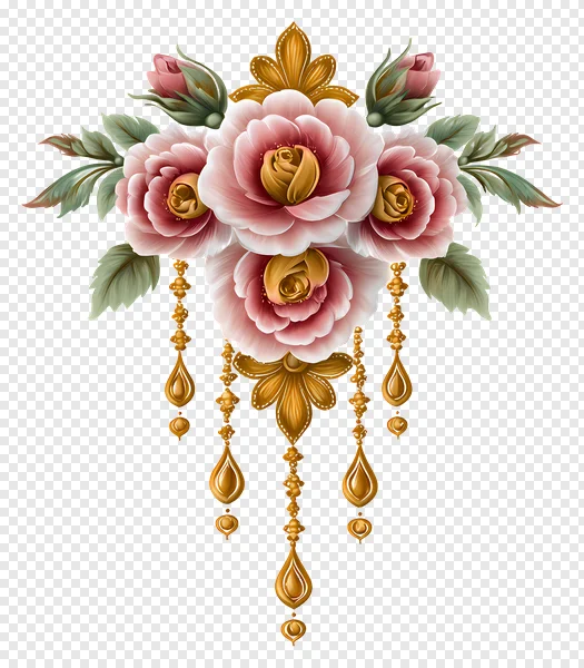 Tags: baroque botanical illustration classical decorative element digital art elegant flower bouquet free download golden ornaments green leaves hanging jewels luxury flowers ornate peony pink floral rococo rose textile design transparent png vintage design