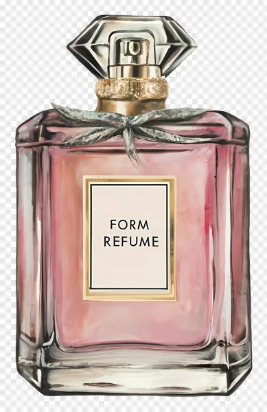 Discover this exquisite transparent PNG of a luxurious pink perfume bottle, perfect for adding a touch of elegance to your projects. Featuring a sophisticated diamond-cut cap, a sparkling gold neck, and a delicate silver bow, this high-quality image of "FORM REFUME" fragrance is isolated on a transparent background, ready for immediate use. Ideal for beauty blogs, product mockups, e-commerce stores, graphic design, and fashion content. Download this glamorous cosmetic essential for free and elevate your creative work today!
