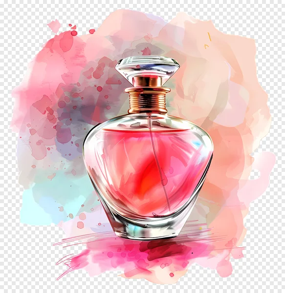 Download this stunning free PNG of an elegant pink perfume bottle, beautifully rendered with a vibrant watercolor splash background. This high-quality, transparent image features a clear glass bottle with shimmering pink liquid, a crystal-like cap, and sophisticated gold detailing, set against artistic red and blue watercolor textures. Perfect for beauty blogs, fashion designs, cosmetic promotions, digital art projects, or any creative endeavor needing a touch of luxury and artistic flair. Enhance your website, presentations, and marketing materials with this captivating, free-to-download fragrance illustration.