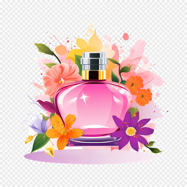 Download this beautiful free PNG of an elegant pink perfume bottle, exquisitely surrounded by a vibrant and lush floral arrangement. Featuring an array of colorful blossoms in shades of orange, purple, and coral with fresh green leaves, this high-quality illustration radiates luxury and natural beauty. With its transparent background, it's perfect for beauty blogs, cosmetic advertisements, feminine branding, special event invitations, or digital art projects. Enhance your designs instantly with this captivating, sweet-scented allure – available for free download!