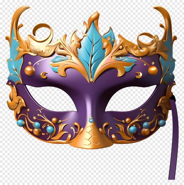 Download this stunning, high-resolution purple and gold masquerade mask PNG for free! Perfect for Mardi Gras, Halloween, costume parties, theatrical productions, or adding a touch of mystery to your designs. This ornate mask features intricate gold detailing, turquoise accents, and a luxurious feel. Use it for graphic design, digital art, or any project needing a beautiful, festive element. Transparent background for easy integration. Get your free download now!