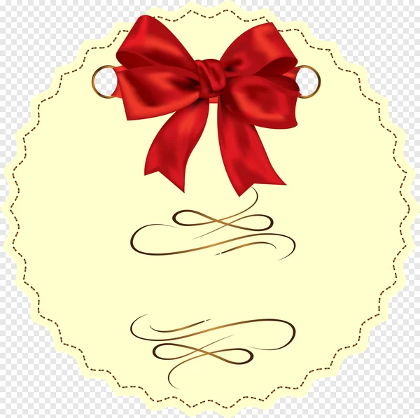 Download this exquisite free PNG of an elegant red satin bow gift tag, perfect for adding a touch of sophistication to your creative projects. This beautiful scalloped label features a realistic red ribbon bow, shimmering golden rings, intricate flourishes, and a charming dotted border. Its transparent background makes it easy to integrate into any design. Ideal for holiday greetings, birthday cards, wedding invitations, gift certificates, product labels, festive banners, or any special occasion. Get this high-quality decorative element to enhance your next creative endeavor now!