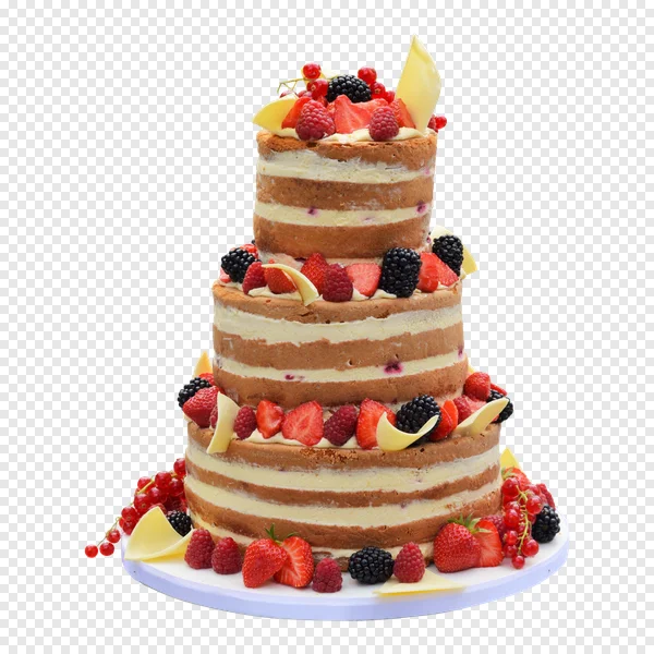 Download this exquisite free PNG of a three-tier naked cake, beautifully adorned with an abundance of fresh mixed berries like strawberries, raspberries, blackberries, and red currants, complemented by elegant white chocolate shavings. This stunning transparent background image is perfect for adding a touch of rustic elegance and deliciousness to your wedding invitations, birthday party designs, menus, websites, or any creative project. Get this high-quality, isolated celebration cake graphic now for your personal and commercial use without any cost!