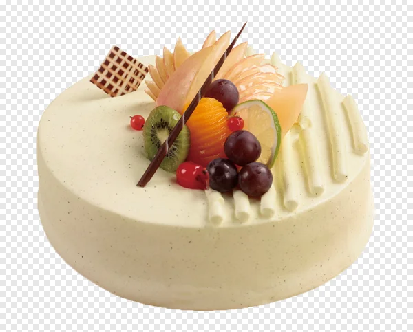 Download this exquisite PNG image of a delectable fresh fruit cake for free! This elegant dessert features a smooth, creamy vanilla bean frosting, beautifully adorned with an assortment of vibrant fresh fruits including juicy grapes, zesty lime, sweet kiwi slices, ripe peach, and ruby red currants. Dark chocolate shards and a decorative lattice add a gourmet touch, making it irresistibly appealing. Isolated on a transparent background, this high-quality PNG is perfect for bakery menus, birthday invitations, food blogs, recipe cards, celebration designs, or any project needing a visually appealing sweet treat. Get your free cake clip art now!