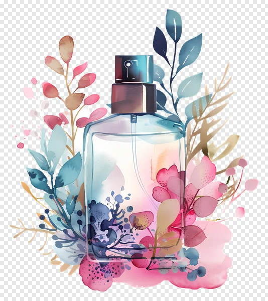 Discover this exquisite free PNG featuring a sophisticated watercolor perfume bottle, gracefully framed by vibrant pink, soft blue, and gold botanical elements. The artistic, dreamlike style of this illustration makes it perfect for adding a touch of elegance to any project. With a transparent background, it's ideal for beauty blogs, cosmetic branding, fashion designs, digital art, social media graphics, or feminine invitations. Download this high-quality, free fragrance art piece to enhance your creative endeavors with its delicate beauty and luxurious appeal.