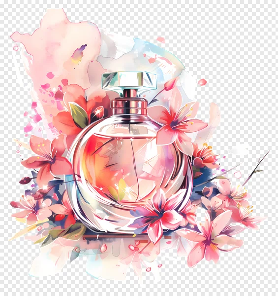Download this exquisite free PNG featuring a luxurious perfume bottle, beautifully rendered in a soft watercolor style, surrounded by vibrant pink flowers and artistic paint splashes. This high-quality, transparent image is perfect for adding a touch of elegance and beauty to cosmetic branding, fashion designs, wedding invitations, social media graphics, or any creative project. Elevate your aesthetic with this stunning floral fragrance illustration. Free for personal & commercial use.