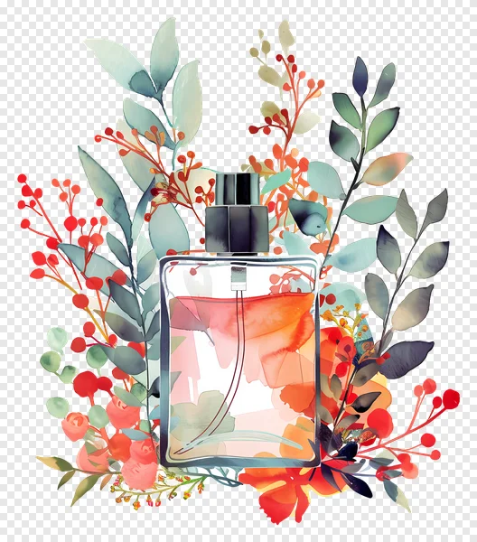 Tags: aroma artistic beauty product botanical design cosmetic image decorative digital art elegant fashion floral art fragrance bottle free download green leaves high quality luxury scent perfume bottle PNG red berries transparent background vibrant flowers watercolor illustration
