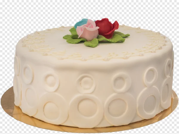 Download this exquisite white fondant cake PNG image for free! Perfect for adding a touch of elegance to your birthday invitations, wedding graphics, anniversary cards, or any celebration-themed digital projects. This high-quality image features a beautifully decorated round cake topped with delicate blue, pink, and red sugar roses and green leaves, surrounded by intricate white icing swirls. The side of the cake boasts a unique embossed circle pattern, all sitting on a shimmering gold cake board. With its transparent background, this versatile PNG is ready to elevate your designs instantly. Enhance your designs with this free cake graphic today!