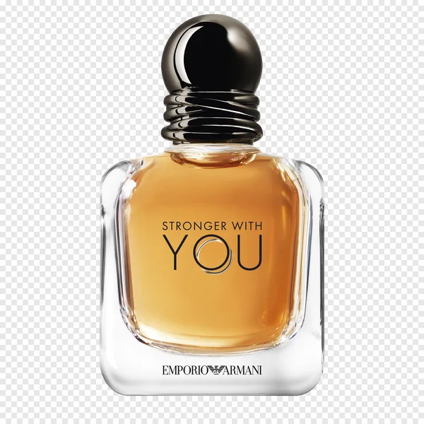 Discover the exquisite Emporio Armani Stronger With You men's fragrance bottle in this high-resolution PNG image. Featuring the signature clear glass square bottle, warm amber-colored liquid, and distinctive metallic twisted cap, this transparent background PNG is ideal for designers, marketers, and enthusiasts. Perfect for websites, presentations, or digital art. Download this luxury perfume bottle image for free and elevate your creative projects!