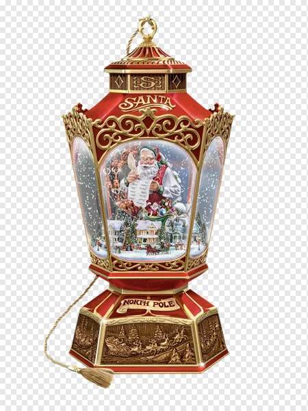 Step into the magic of Christmas with this stunning free PNG of a vintage-style Santa Claus Christmas Lantern Snow Globe. Featuring a detailed scene of Santa reading his list in a snowy North Pole village, complete with charming houses, festive trees, and his trusty reindeer. The ornate red and gold lantern base showcases an embossed scene of Santa's sleigh taking flight over a winter landscape. Perfect for holiday greeting cards, digital designs, festive social media posts, or seasonal decorations. Download this high-quality, transparent background image for your next Christmas project and add a touch of nostalgic charm and holiday spirit to your creations!