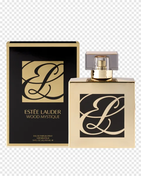 Discover the opulent Estée Lauder Wood Mystique Eau de Parfum in this high-quality PNG image, perfect for capturing luxury and sophistication. Featuring the elegant gold square bottle with a clear cap and the matching black and gold branded packaging, this transparent background image is ideal for beauty blogs, e-commerce product listings, or marketing designs. Download this free Estée Lauder Wood Mystique PNG to enhance your creative projects with a touch of designer fragrance and premium cosmetic visuals, showcasing the iconic 'EL' logo.