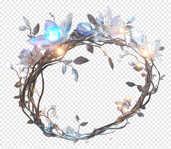 Tags: crystal wreath decorative design element digital art elegant enchanted ethereal fantasy floral frame glowing flowers iridescent light effect luxurious magic mystical png silver sparkling translucent transparent