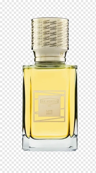 Download this stunning free PNG of the EX NIHILO LOVE SHOT perfume bottle. This luxurious rectangular glass bottle, filled with a radiant golden-amber liquid and crowned with an intricately designed, textured gold cap, exudes elegance and sophistication. The clear 'EX NIHILO PARIS LOVE SHOT' label is visible on the front. Perfect for beauty blogs, e-commerce product listings, graphic design projects, presentations, or any creative endeavor requiring a premium fragrance visual. Enhance your digital content with this exquisite, transparent background beauty product shot today!