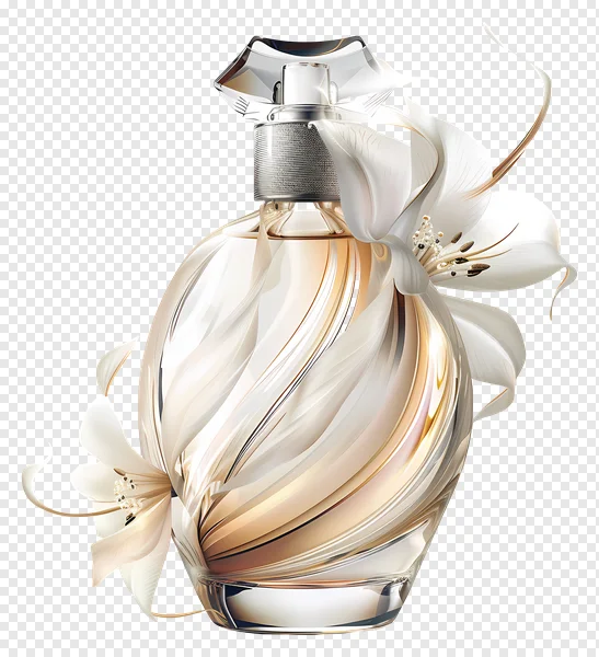 Download this stunning, high-quality PNG of a luxurious floral perfume bottle for free! This elegant fragrance features an exquisitely designed clear glass bottle with graceful white flowers and swirling golden accents, topped with a sophisticated crystal cap. With its transparent background, this versatile image is perfect for enhancing beauty blogs, fashion advertisements, graphic design projects, product presentations, and any digital content requiring a touch of high-end sophistication and allure. Elevate your creative work with this beautiful and captivating perfume imagery.