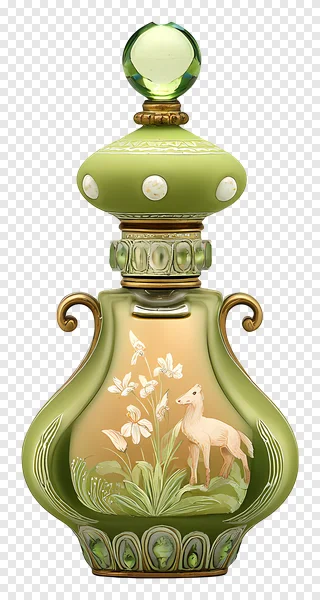 Download this stunning, high-resolution free PNG of an exquisite ornate green perfume bottle. Featuring a captivating vintage design with delicate white floral illustrations, a graceful deer, and luxurious gold accents, this decorative bottle is perfect for adding an elegant touch to any project. Its transparent background makes it ideal for graphic design, digital art, scrapbooking, wedding invitations, website embellishments, or presentations. Get this unique, antique-style decanter image now and elevate your creative work with a touch of timeless beauty!