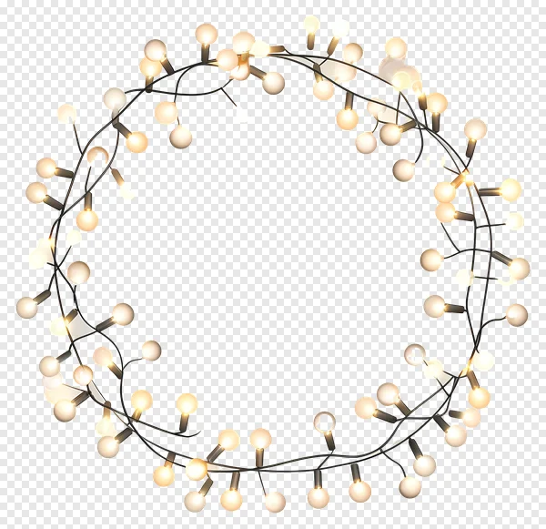 Download this beautiful, high-quality fairy lights PNG image for free! Featuring a circular arrangement of warm white string lights on a transparent background, it's perfect for adding a magical touch to your designs. Use it for holiday graphics, party invitations, website backgrounds, or any project needing a festive glow. Instantly enhance your visuals with this versatile and free-to-use PNG.