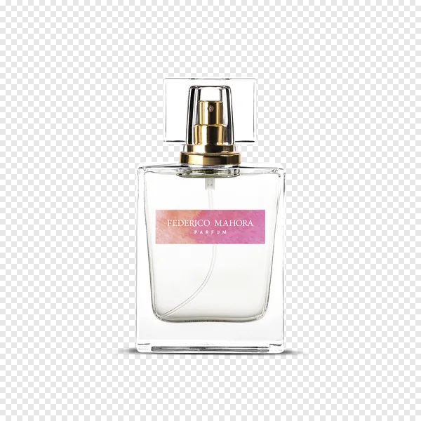 Download this high-quality, free Federico Mahora Parfum bottle PNG image, perfect for your beauty, cosmetic, or e-commerce projects. This elegant transparent glass fragrance bottle showcases a sophisticated gold sprayer and a unique pink and orange watercolor gradient label featuring the 'FEDERICO MAHORA PARFUM' branding. The image is isolated on a white background with a subtle shadow, offering a clean, professional look. Ideal for product mockups, graphic design, digital advertisements, social media content, or website visuals. Enhance your creative designs with this luxurious perfume bottle asset, available for commercial and personal use.