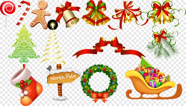 Tags: Candy cane Celebration Christmas Christmas bells Christmas gifts Christmas stocking Christmas tree Christmas wreath Clipart Decorations Elements Festive Gingerbread man Glowing candle Graphics Holiday Jingle bells Lollipop North Pole sign PNG Pine sprig Red ribbon Santa's sleigh Transparent Winter