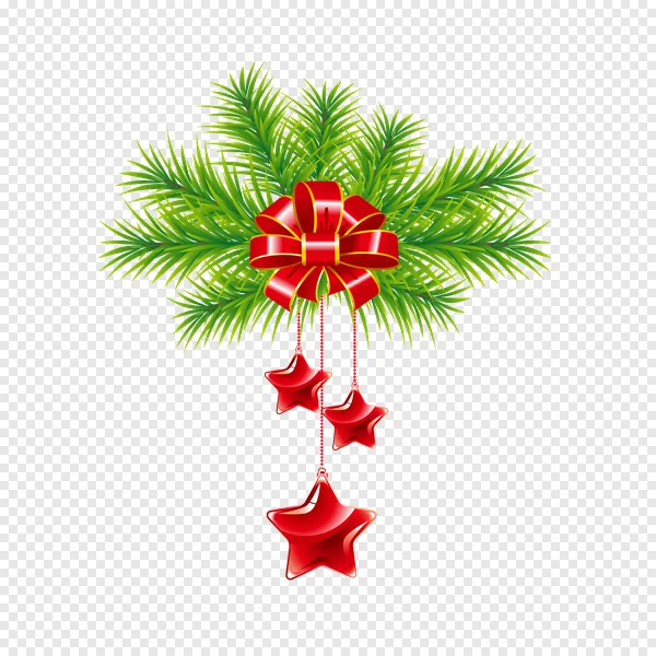 Tags: Christmas celebration decoration festive fir branches glossy stars golden trim graphic green needles hanging ornaments holiday illustration pine branches red bow red ribbon red stars star ornaments transparent PNG vector winter