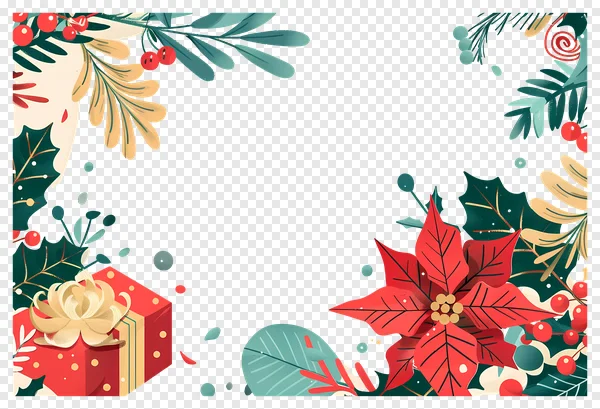 Tags: Christmas berries Christmas frame Xmas design celebration frame digital Christmas festive PNG floral border free download gift box greeting card element holiday border holiday decor holly leaves invitation template poinsettia illustration red and green seasonal frame transparent background winter foliage winter graphic