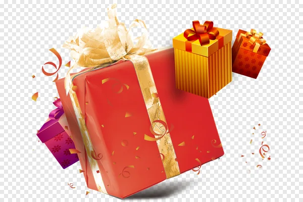 Download this vibrant collection of festive gift boxes as a high-quality free PNG image. Featuring a large red present with a golden ribbon and confetti, accompanied by smaller gold and purple gift boxes, this transparent graphic is perfect for adding a touch of celebration to your digital designs. Ideal for birthdays, holidays like Christmas and Valentine's Day, anniversaries, promotions, or any special occasion. Enhance your invitations, social media posts, website banners, and marketing materials with these beautiful presents. Get your free transparent gift box PNG today and make your projects pop with joy and surprise!