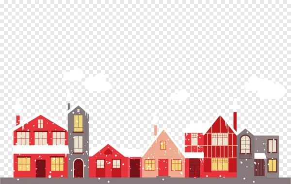 Download this charming free PNG of a festive winter town street, perfect for your holiday projects! This delightful illustration features a row of cozy houses with warm glowing windows, blanketed in fresh falling snow. Ideal for Christmas cards, website banners, social media posts, desktop backgrounds, or any seasonal design needing a touch of winter magic. The flat design style and vibrant red, grey, and pinkish hues bring a cheerful, modern aesthetic. Get this high-quality, transparent background image today to create inviting winter scenes and spread holiday cheer. Perfect for designers, bloggers, and anyone celebrating the snowy season!