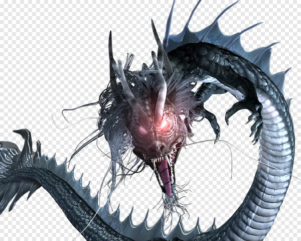 Unleash the power of this stunning mythical dragon PNG! Featuring a fierce Eastern-style dragon with captivating glowing red eyes, sharp fangs, a long serpentine dark scaled body, and dramatic fins, this high-quality transparent image is perfect for your next creative project. Ideal for game development, fantasy illustrations, graphic design, presentations, or personal digital art. Download this intimidating, ancient fantasy creature with a transparent background for free and add an epic, legendary touch to your designs. Get your free transparent dragon now!