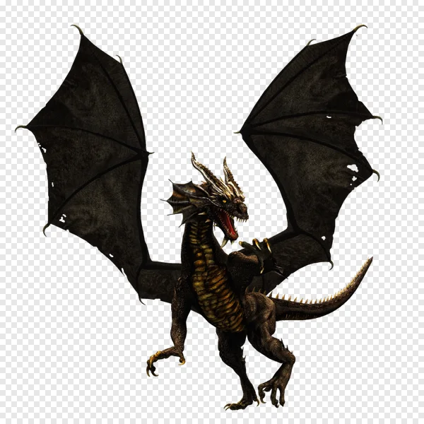 Unleash the power of this stunning free PNG of a fierce dark dragon, poised with majestic spread wings and an intimidating roaring mouth. This high-quality fantasy creature features striking golden belly scales, sharp claws, and intricate details, ready to add a powerful touch to your creative projects. Perfect for game design, fantasy illustrations, graphic design, websites, or personal artwork. Download this transparent background dragon image now to bring your mythical visions to life, completely free for your next epic creation!